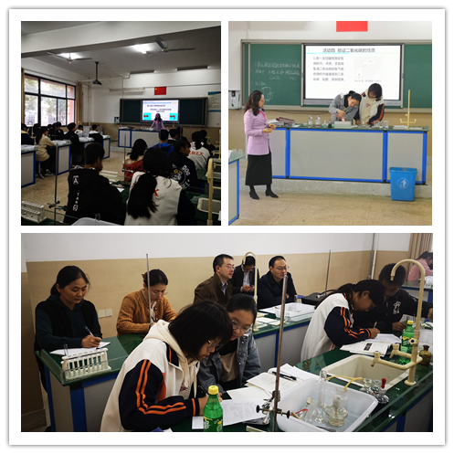 名师工作室成员顾海燕老师在化学实验室执教了《二氧化碳的实验室制取与性质》一课,顾老师充分准备了实验器材,通过活动来引导学生探究实验室制取氧气的理想试剂、探究制取二氧化碳的装置、制取二氧化碳、验证二氧化碳的性质、以及证明碳酸型饮料中含有的二氧化碳,学生在实验中获得体验,获得知识,真正体现了工作室“为学”课堂的内涵,顾老师有新意地让学生用思维导图总结本节课的收获,对学生的思维进行整理。