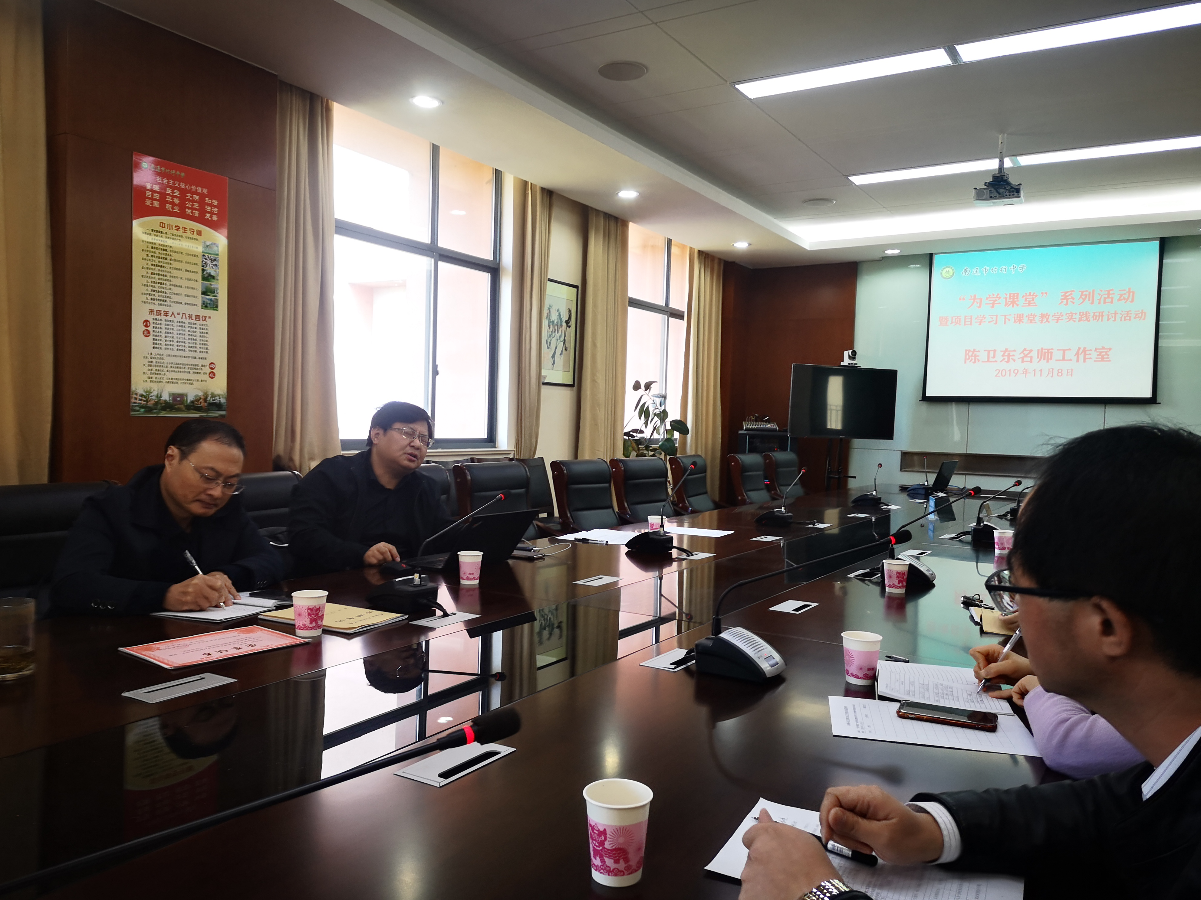 为持续推进南通市深化基础教育课堂教学改革,落实“限时讲授、合作学习、踊跃展示”的十二字课堂教学新评价的要求,结合学科特点和学科发展需求,探索项目学习模式下的课堂教学的实践效果,2019年11月8日,陈卫东名师工作室“为学课堂”教育教学研讨活动在竹行中学顺利开展,名师工作室成员和竹行中学青年教师成长工作室成员全程参与了此次活动。