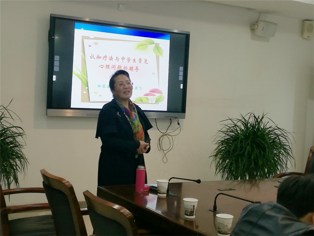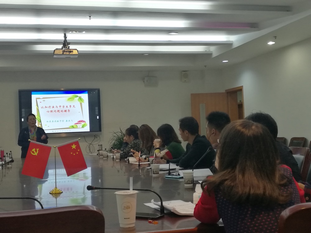 2019年11月17日晚间18:30,工作室成员及天星湖中学高一年级班主任齐聚天中六楼会议室,听取了江苏省特级教师、国家二级心理咨询师、如东实验中学副校长秦亚飞老师所作的《认知疗法与中学生常见心理问题的辅导》专题讲座。秦特列举中学生的学习障碍、行为障碍、情绪障碍、人际交往障碍、青春期性心理障碍等常见心理问题,提出初步干预及辅导策略,突出“认知疗法”。讲座围绕“认知疗法的前世今生、人格与治疗理论、心理征服过程”三方面的内容展开,既有专业的理论高度、又有实践的施行措施,为班主任及科任老师解决学生心理障碍提供了有益的帮助。讲座结束后,班主任老师就一些班级管理工作中的个案问题与秦特进行了交流,秦特进行了耐心细致的剖析与解答。