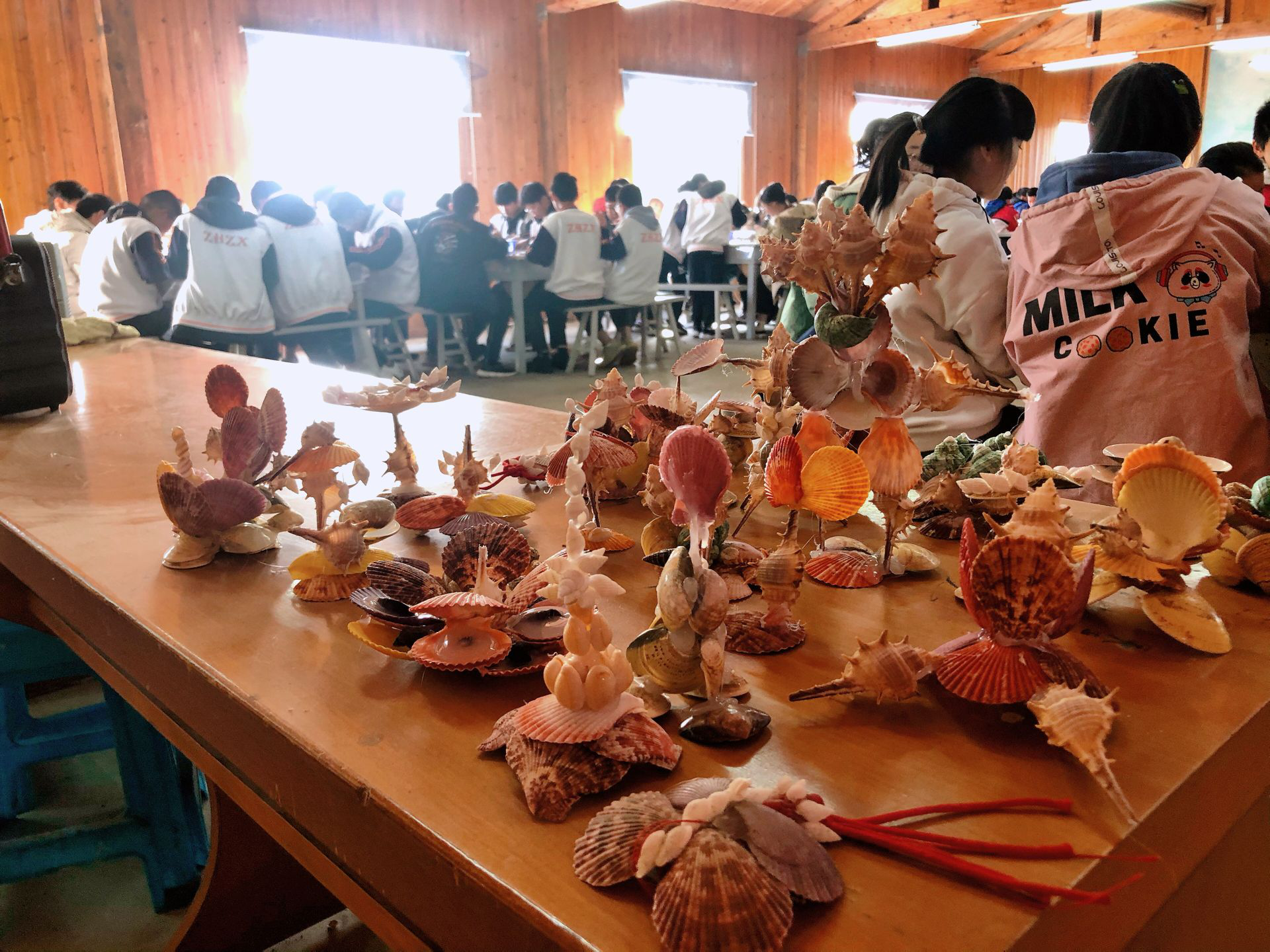 在基地的四天,学生们不仅接受了内务整理、环境保护、文明礼仪、野外生存等社会实践训练,也初步掌握了贝壳制作、家政烹饪等技艺。