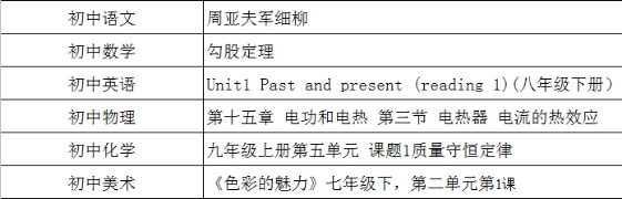 初中语文、初中数学、初中物理、初中化学、初中美术