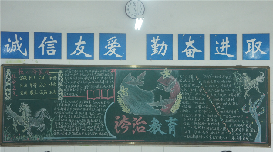 各个班级的宣传委员带领着同学们积极设计,呈现的黑板报都各具特色:有的设计新颖,贴近实际;有的图文并茂,紧扣主题;有的创新美观,耳目一新。
