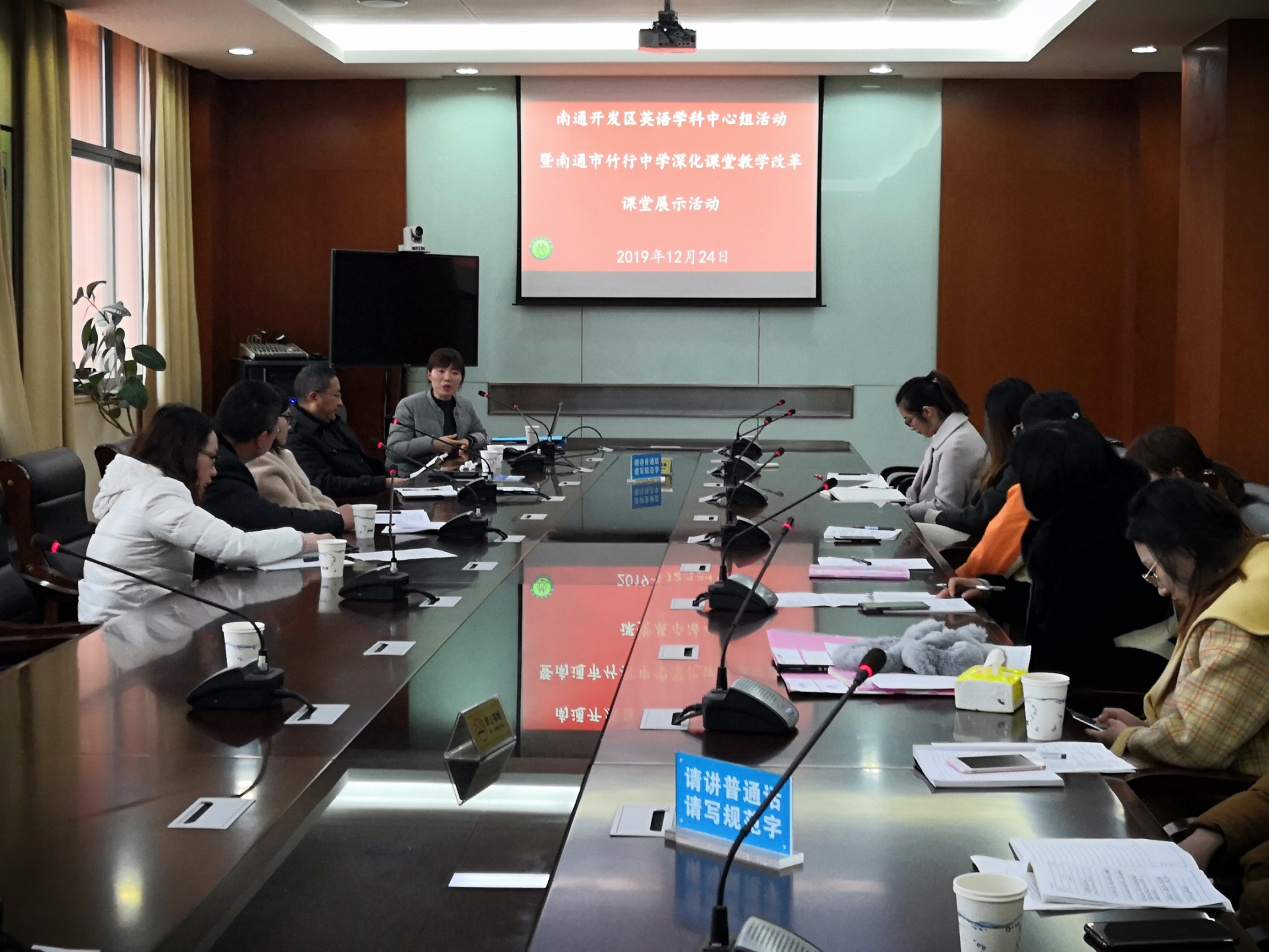 为进一步深化课堂教学改革,提升课堂教学品质,全面贯彻落实《南通市深化基础教育课堂教学改革指导意见》,12月24日,南通市开发区英语学科中心组活动暨南通市竹行中学深化课堂教学改革课堂展示活动在竹行中学成功举行。市英语教研员陈亚红主任和区教研员吴迪开主任来校莅临指导,区东方中学部分英语教师和我校全体英语教师参加了此次活动。