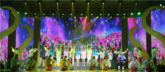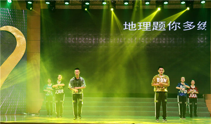晚会现场气氛热烈,台下座无虚席,掌声雷动。晚会在党员大合唱《不忘初心》《走向复兴》中拉开序幕,党员同志们唱出了“初心不忘来时路,匠心共筑中国梦”的豪情与决心;音乐剧《蜕变》演绎了天中学子成长成才的经历;地理教研组的天中地理版《卡路里》以动感的节奏燃爆现场;相声《文史工作者》将一对“活宝”对文史的热爱表现得淋漓尽致;歌舞《东方之珠》尽展英语教研组的风采;器乐舞蹈《看山看水看中国》展现了中国的地大物博,山河锦绣;舞蹈《我和我的祖国》用柔美的音乐,整齐的动作演绎着我校女教师们与祖国的故事;“薄荷绿”乐队的《爱的飞行日记》和《逆战》的演出变成了千人合唱;语文教研组的《元妃省亲》则以诙谐的语言、搞笑的情节和精湛的演技博得阵阵喝彩;街舞《handclub》则将高中学生的青春活力展现的活灵活现;大歌舞《我们的时代》表现出了全体天中人的决心与信心,也让颁奖盛典的主题得以升华。