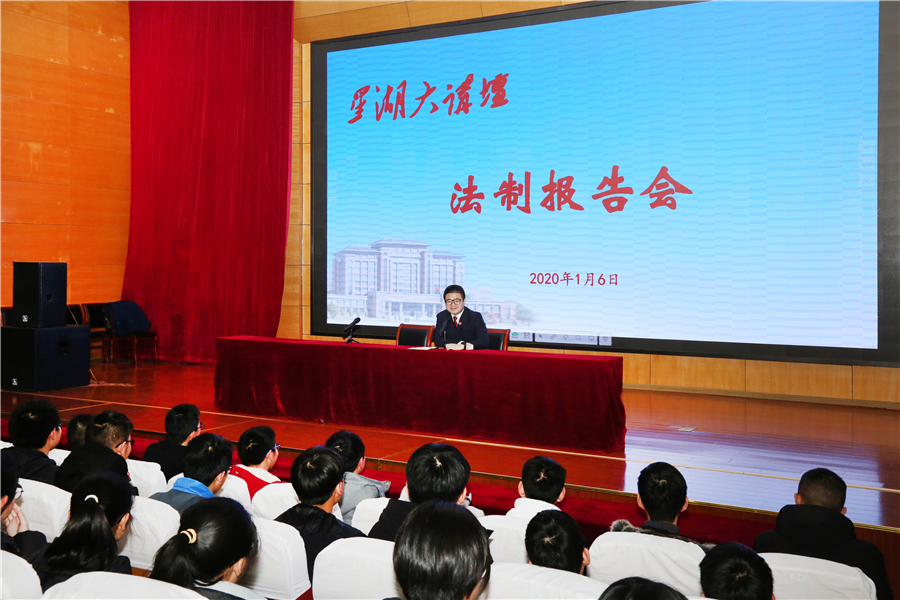 学法辨是非,知法明荣辱。为了加强同学们的法律意识,接受法制教育,自觉遵纪守法,做一名知法、守法的合格中学生,1月6日下午的班会课,南通市天星湖中学邀请了学校法制辅导员,南通开发区检察院曹旋检察官,为高一年级学生做了专场法制教育报告会。