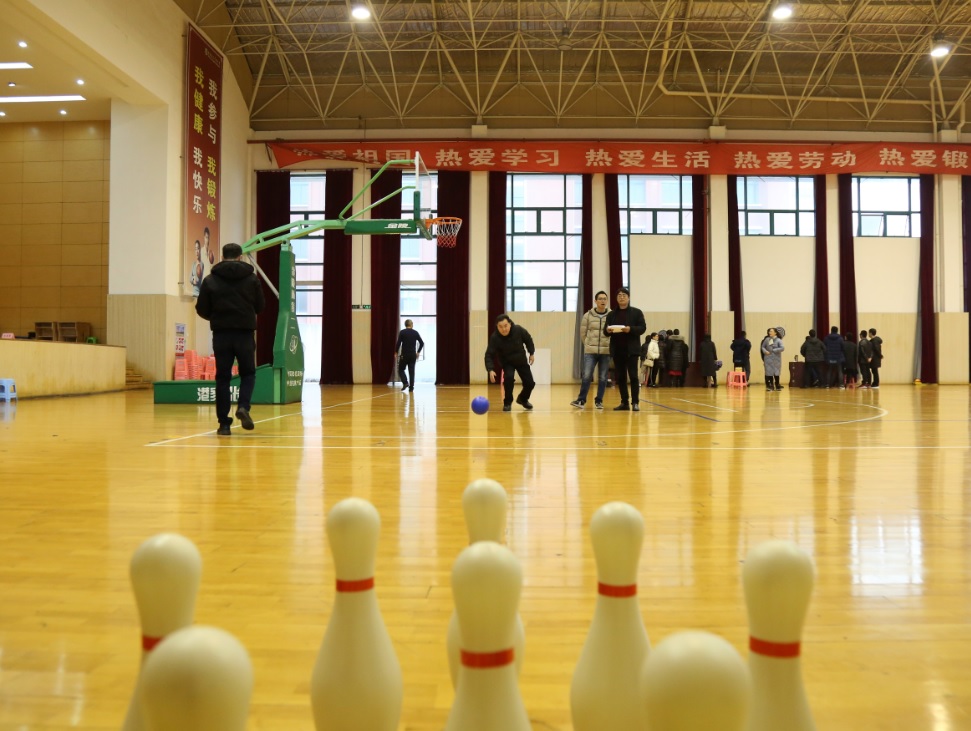 本次比赛采用玩具型塑料保龄球作为道具,模拟正规保龄球运动,赛制稍作更改,男子站在7米、女子站在5米外进行击打,三轮机会,以每轮累积击倒保龄球之和记分。由于活动新颖有趣,教职工们热情满满,整个活动在一片热闹的气氛中圆满结束。