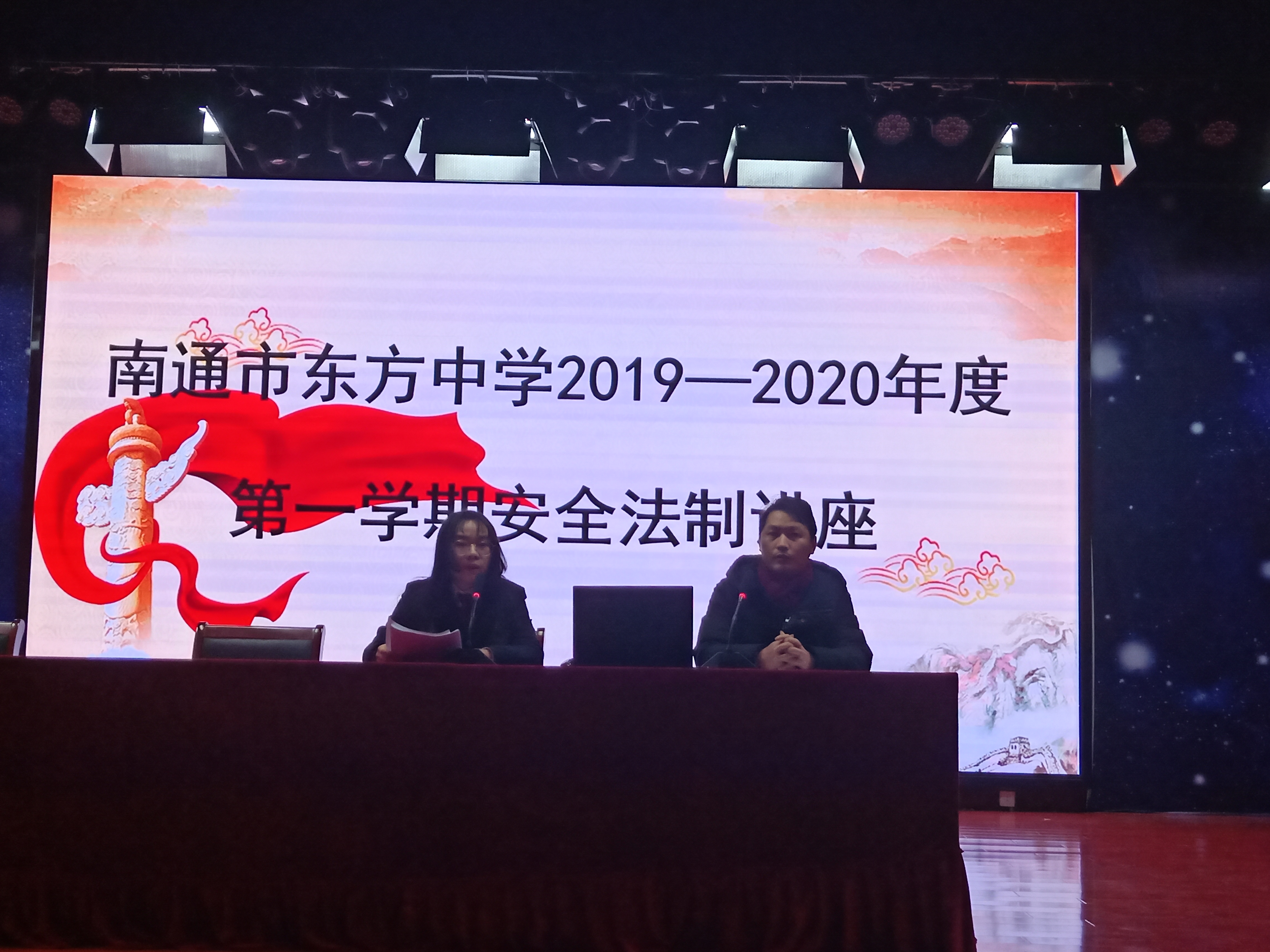 南通市东方中学举行2019-2020年度第一学期安全法制讲座
