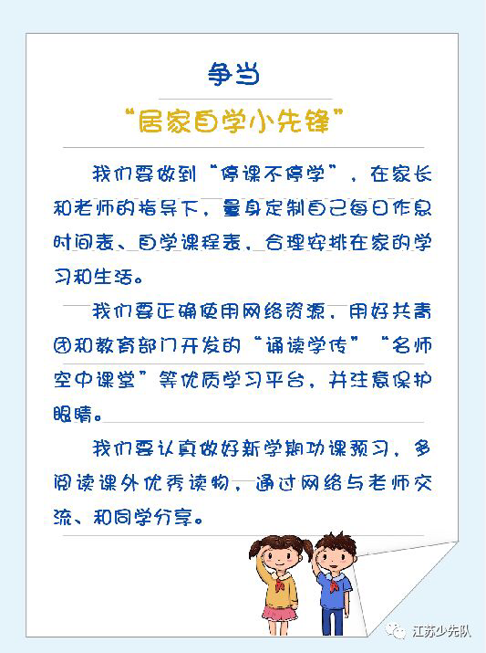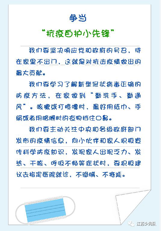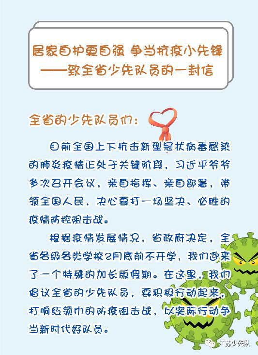 【园区学校少先队】(转发)江苏省少工委致全省少先队员的一封信