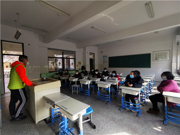 对学校保洁人员每天的体温测量、自我防护、校园各个区域的消毒、通风等具体要求进行了讲解,让每位保洁人员增强自我防范意识,明确保洁要求。张泽其老师传达了园区卫生防疫部门对校园消毒知识的培训要点。