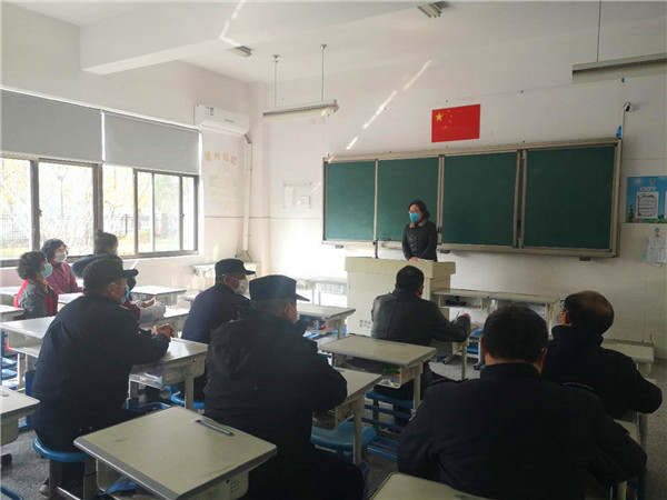 为有效防控新型冠状病毒感染的肺炎疫情,提高园区学校保安、保洁的工作绩效,确保我校师生的健康和校园安全,3月6日上午,园区学校召开了“保安保洁人员疫情防控培训会”,学校党支部书记、校长姚敏,副校长储德杰、总务处耿建峰主任以及全体保安保洁人员参加了会议。