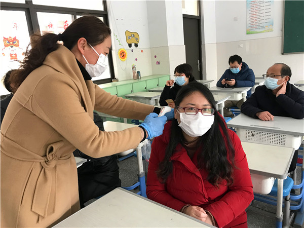 午间,由各班主任在教室对每个学生进行体温测量,做好记录。当发现有体温异常的学生,立即带至隔离室,由专业医务人员对其症状进行诊断,详细了解其假期行踪及接触人群。如一般发热,则通知家长带回就诊;如为“疑似症状”,则拨打120,前往就诊,同时通知家长,并由学校逐级上报。同时,马上对该班学生和密接人员进行暂时封闭管理,并对该生就诊情况实时跟踪,视情况再进行下一步处理。