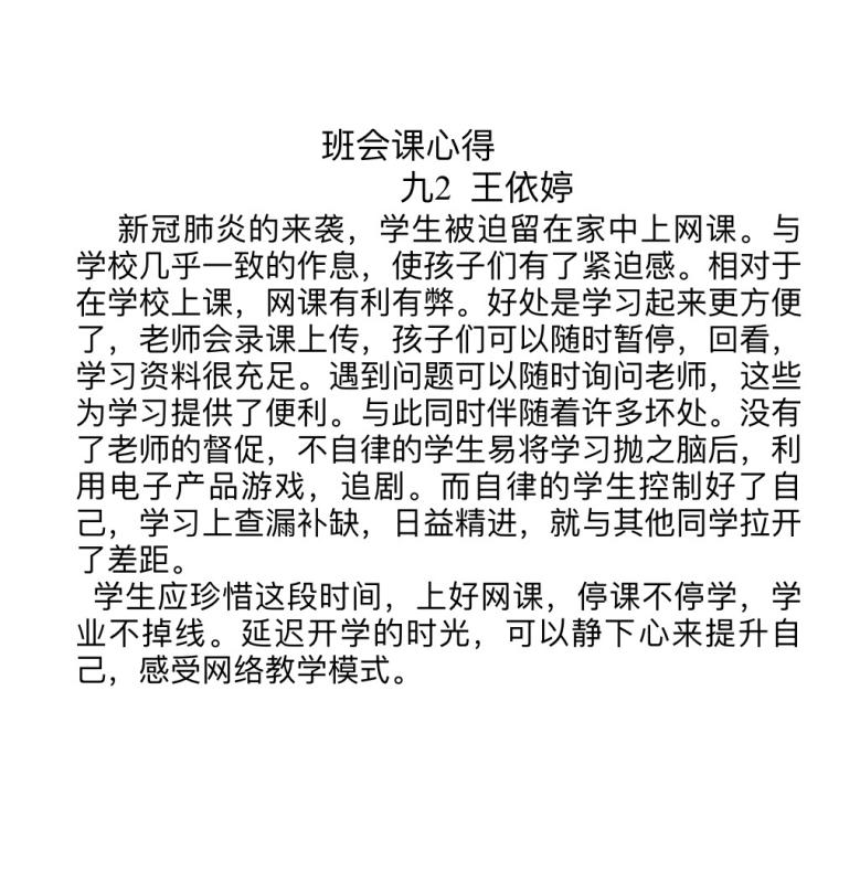 各班主任首先播放了班会课视频,视频内容包括以下几个方面:竹行中学的同学们分享疫情以来的点滴感受;针对线上学习,主持人季老师再提要求,对同学们的居家学习给出建议,强调了疫情下线上教学的必要性和重要性;表扬各班级线上学习的模范家长与学生,指出当前线上学习的不足之处。