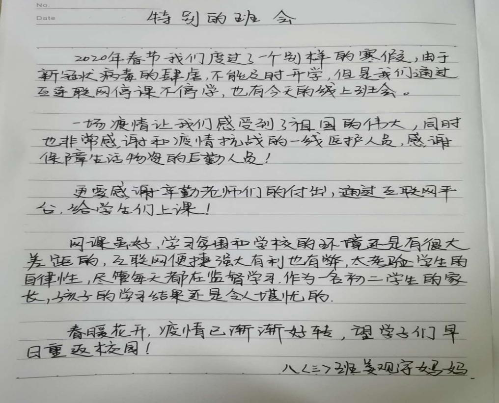 此次特殊的班会课,寄托了学校和班主任们对学生的眷眷期望。接下来,班主任们用各自的方式,与学生交流,并结合本班情况对前一阶段的学习进行总结,对下一阶段的学习提出要求。