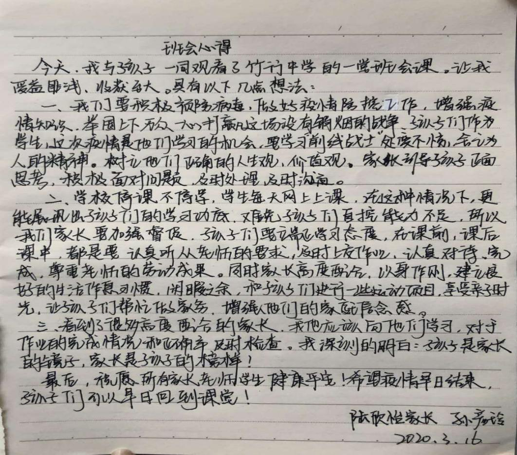 课后,同学、家长纷纷提笔,用文字的形式表达自己的真切感受: