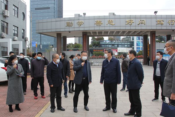 3月27日上午,区管委会沈红星主任、刘锋副主任莅临我校调研指导疫情防控与开学准备工作。区社会事业局局长邵平、教育处处长季春华及市场监督、疾控卫监等部门领导、专家陪同调研检查。