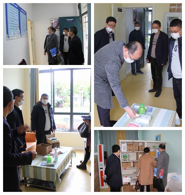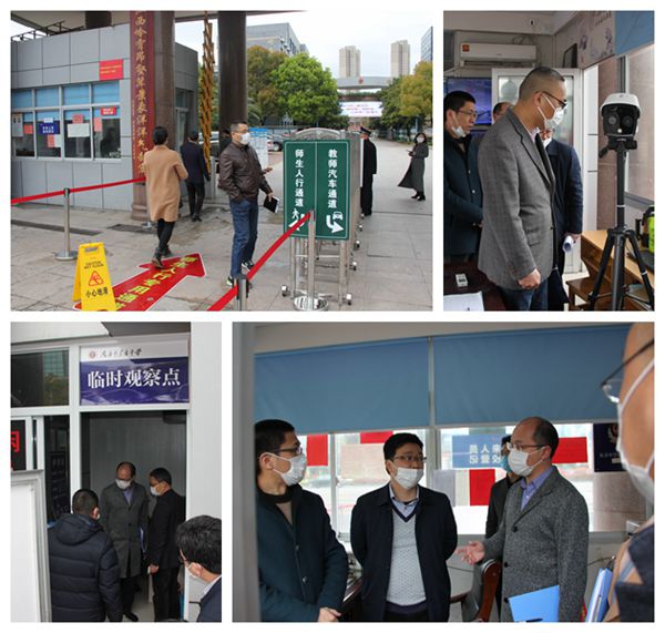 沈主任等领导首先在校门口进行了体温检测,并对测温记录等工作进行了询问。随后,他们实地查看了师生食堂、应急隔离室和防疫物资储备室等场所,详细询问了防疫物资储备、防控机制建立、师生信息排查等情况。