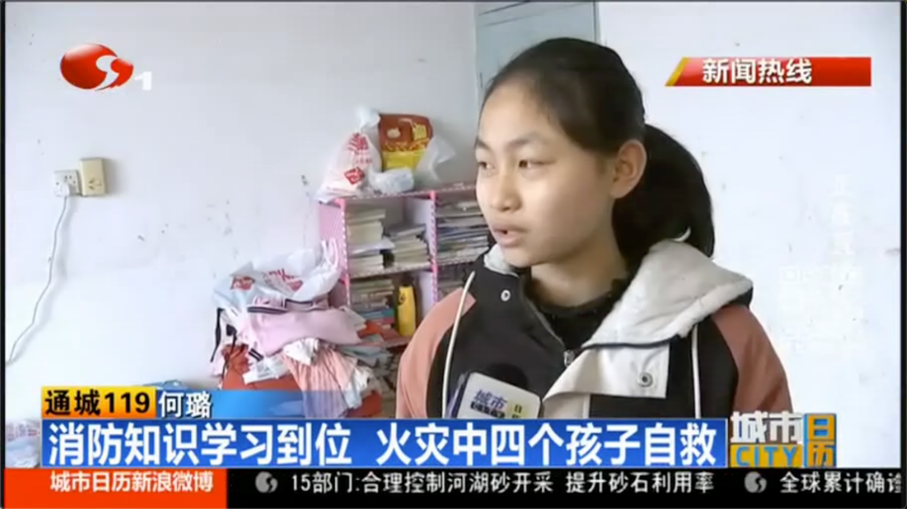 日前江苏警方公众号、南通城市日历和南通广播电视台对此次事件进行了报道,何璐妈妈也带着4个孩子向南通市消防救援支队景兴路特勤站的消防战士赠送了锦旗,感谢他们 “抢险救危,真情为民”。消防救援人员对何璐同学关紧房门,躲到卫生间,打开窗户,用湿毛巾捂住口鼻的做法大为赞赏,他强调遇到火灾,要用湿毛巾捂住口鼻,保护呼吸道,然后弯腰低至靠墙,逃到安全区域,如果烟火阻断了下楼的通道,就要紧闭房门并用湿毛巾堵住门、窗缝隙,防止烟火袭入,有条件地尽量躲到卫生间,打开窗户让消防队员能发现自己,固守待援,切不可惊慌失措,盲目下楼逃生。