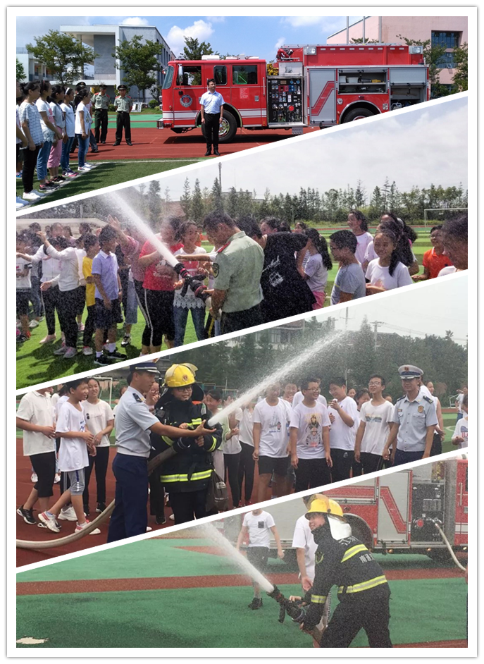 自2018年起,我校已经连续两年邀请景兴路消防支队在初一新生入学教育时组织进行消防技能的训练。消防教官开来消防车,为同学们讲解消防车的内部构造,对各种消防器材、救援装备进行了详细的讲解和操作示范,还连接上消防水管,让同学们穿上消防服,实际演练了一番。教官们也详细讲解了多种情况下面临火灾的应对措施,向同学们传授了实用的消防知识和技能。