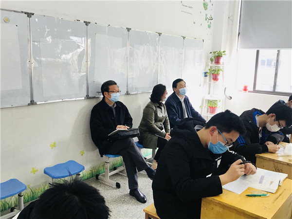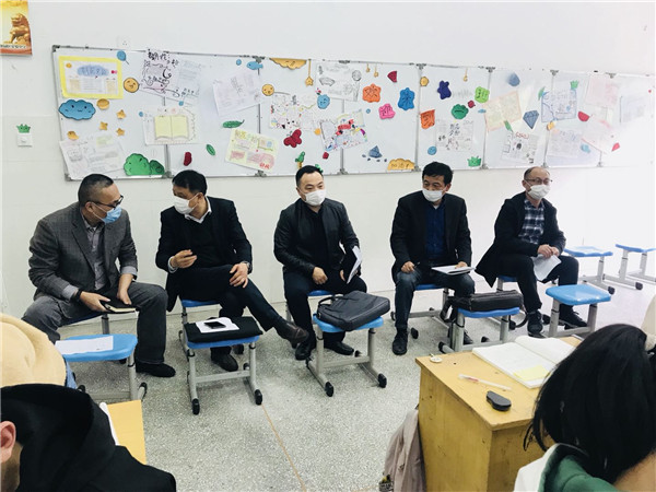 金局长一行分批随机听取了三节课,与授课老师就课堂教学改革进行了亲切的交流与指导。