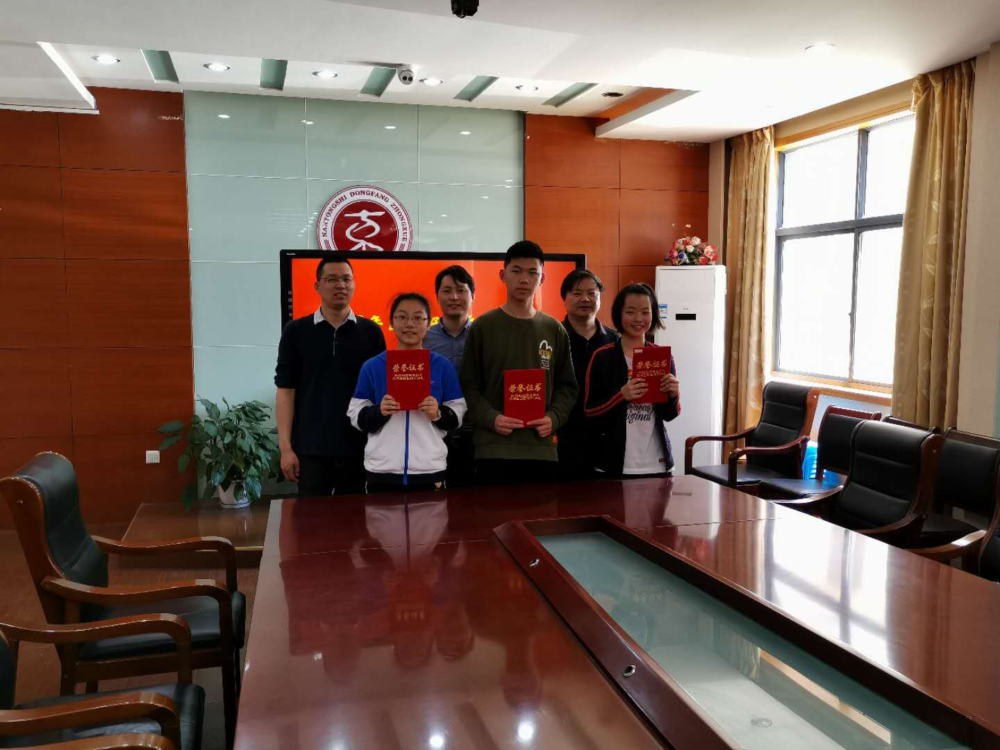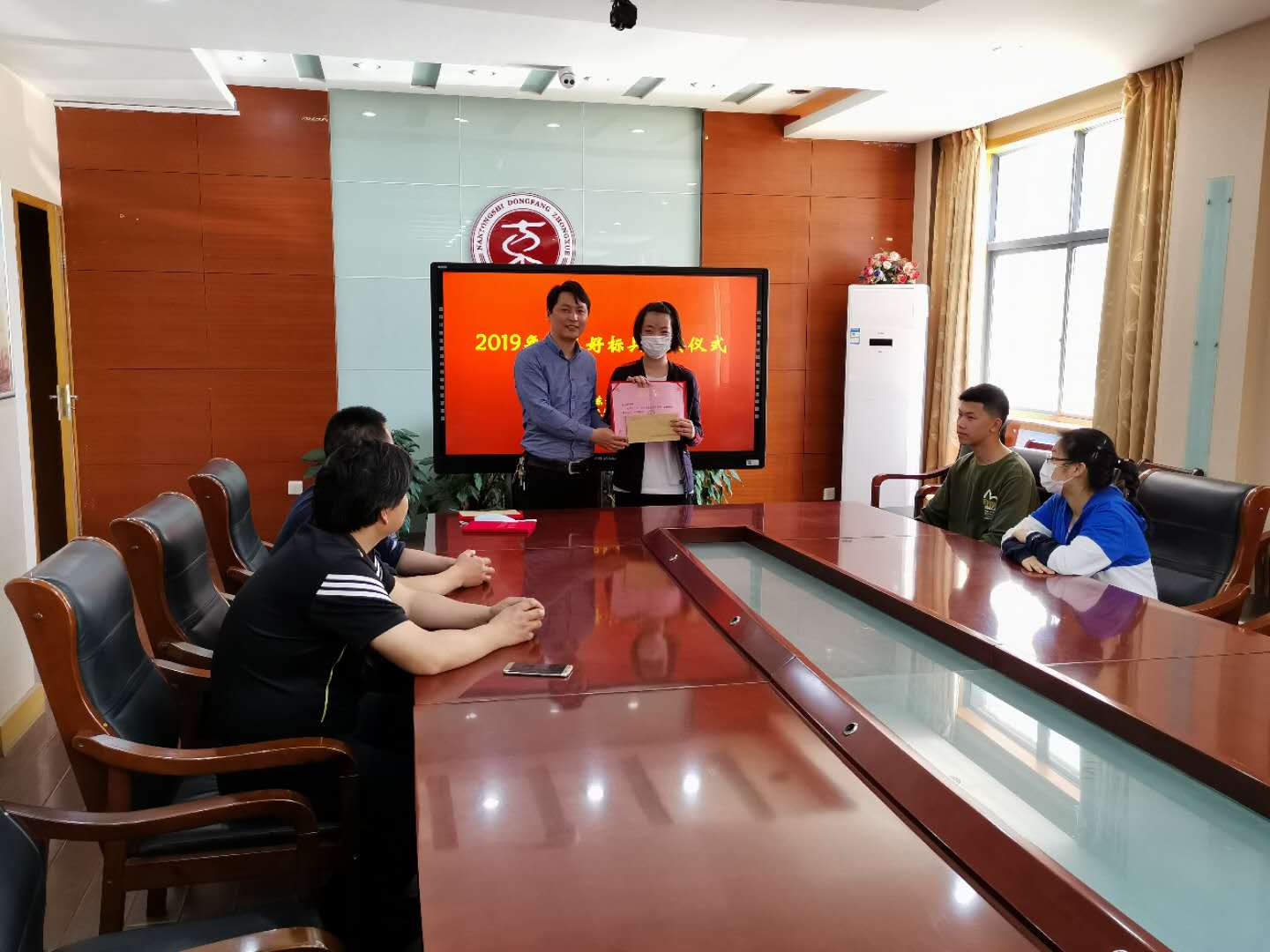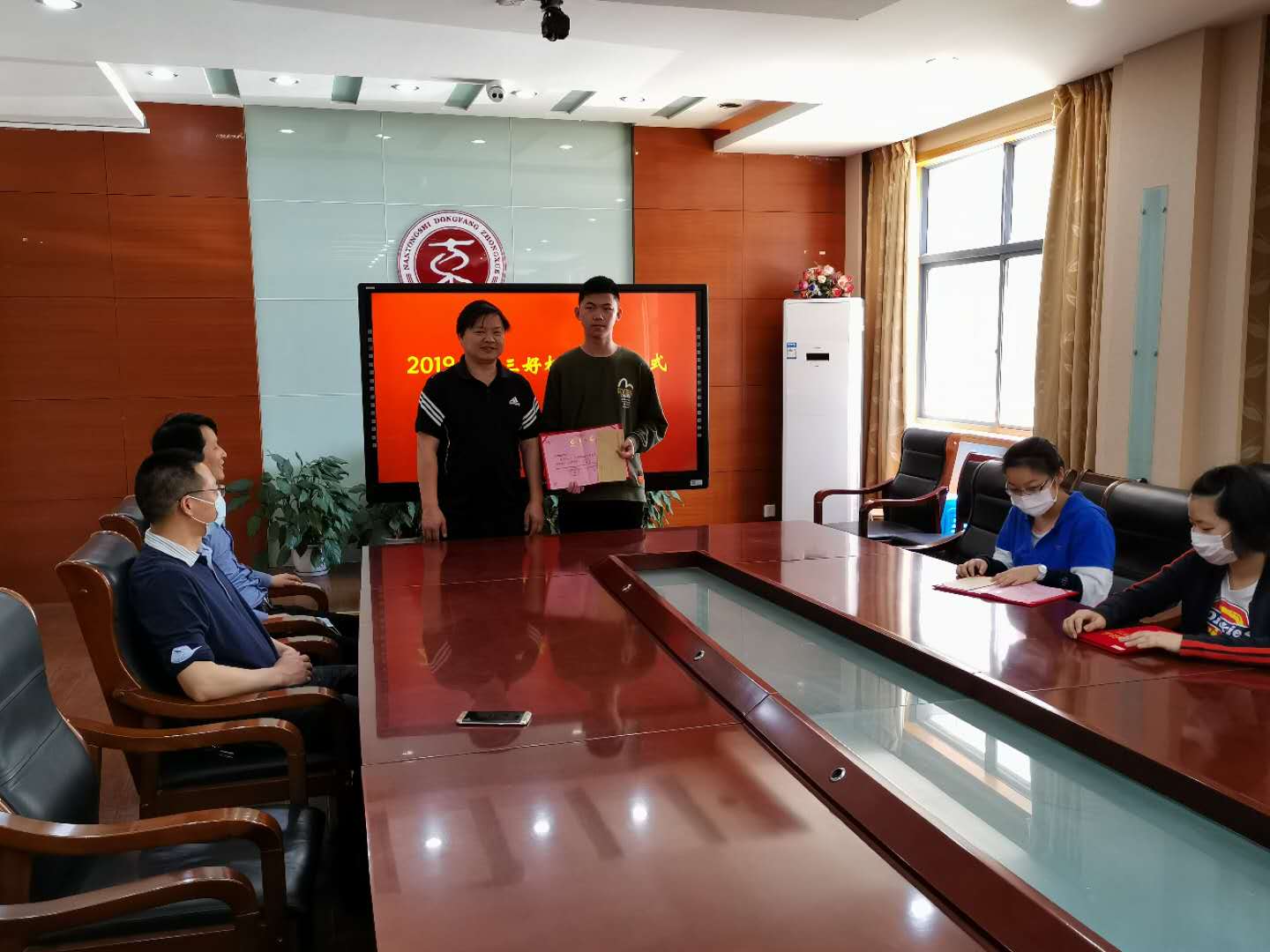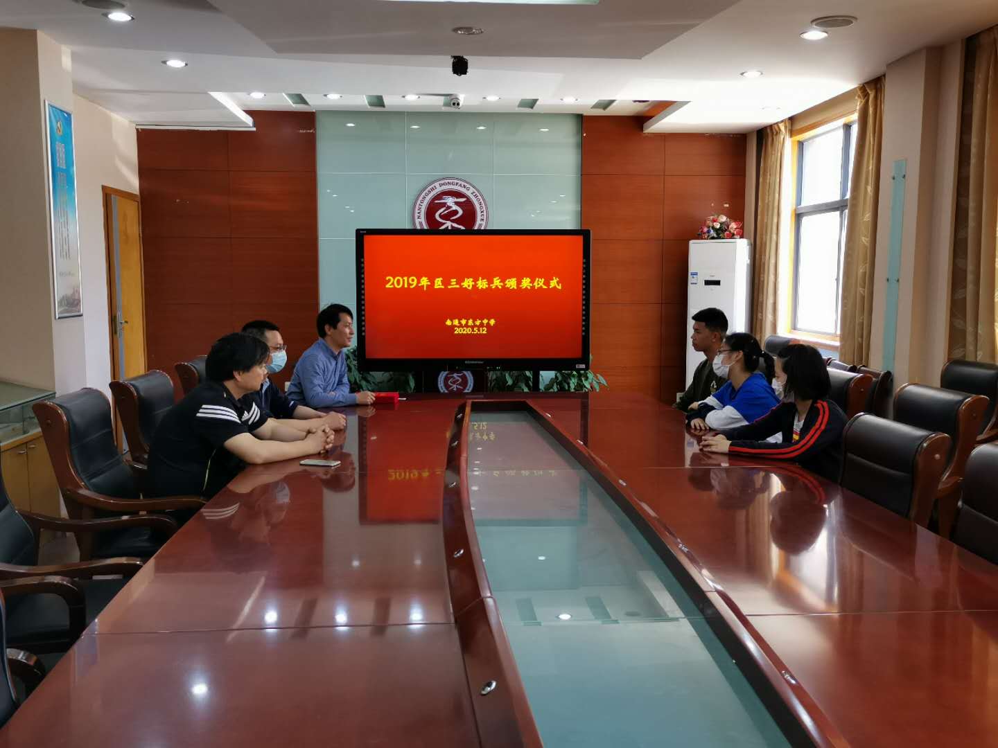 因疫情影响,根据区关工委要求,2019年区三好标兵颁奖仪式由各校自主安排。5月12日中午,校政教处成员和获奖学生一起举行了颁奖仪式。