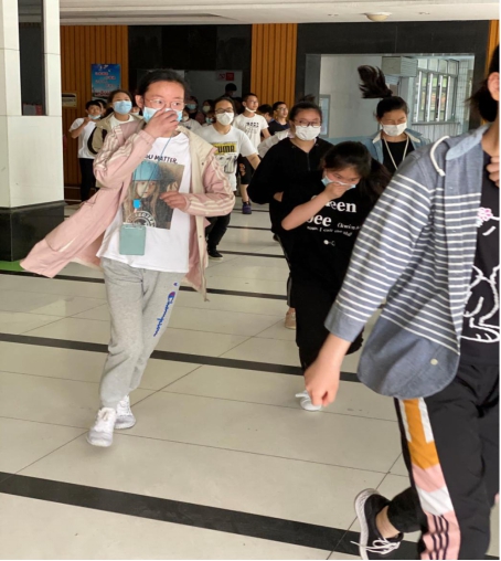 2020年5月18日上午,随着广播里一声令下,初二年级防灾减灾应急疏散演练正式开始。