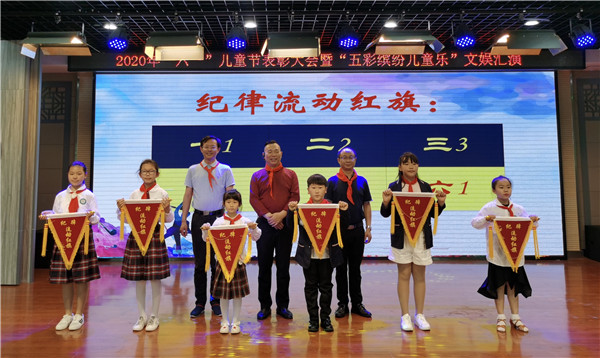 储德杰副校长宣读此次六一儿童节表彰决定,表扬班级文化布置优秀班集体,对获得卫生、纪律流动红旗的班级表示祝贺,号召全体学生向2019年南通开发区三好标兵顾子涵同学学习,立志向,勇向上,做勤恳的追梦少年。