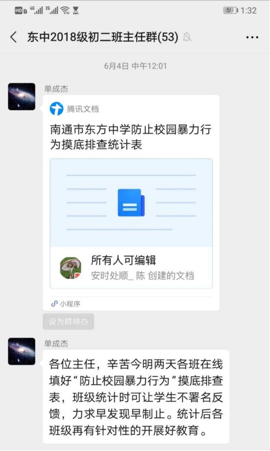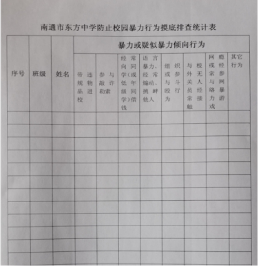 南通市东方中学开展防止校园暴力行为摸底排查工作