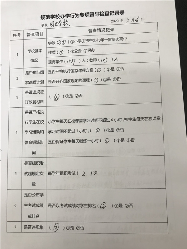 5月26日区规范学校办学行为专项督导情况反馈