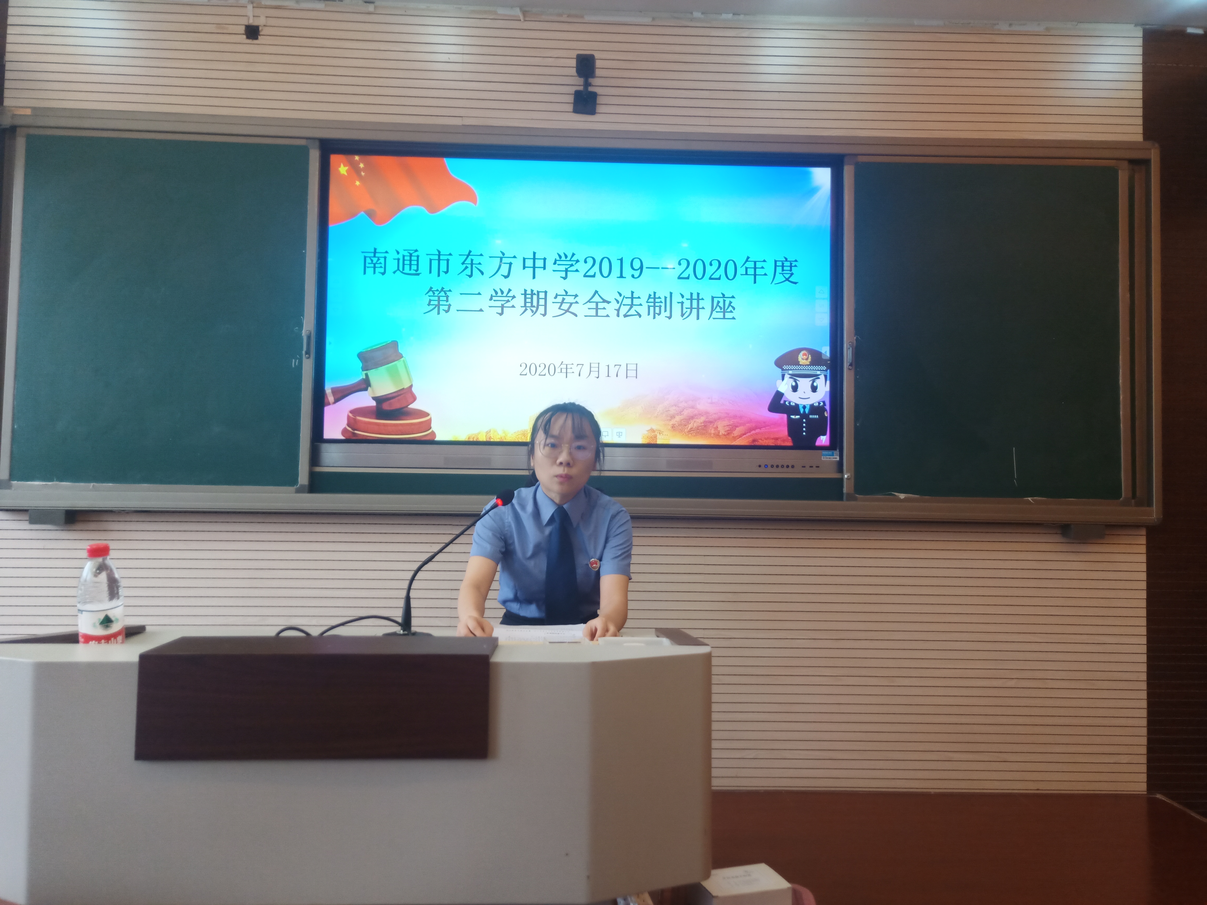 暑假到来前夕,为帮助学生树立法制观念,学会利用法律进行自我保护,做一个知法、守法的合格学生,17日下午,东方中学邀开发区检察院石检察官为同学们带来了一堂生动的法制安全教育讲座。