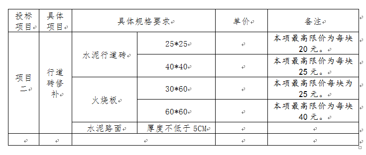 项目(二):校园干道行道砖(火烧板及水泥砖)修补二次公告