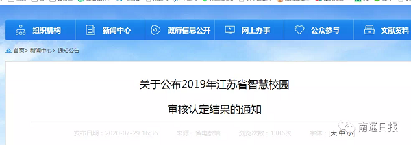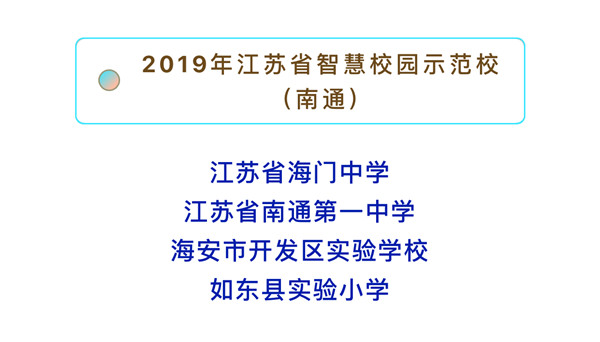 根据江苏省教育厅、工业和信息化厅、财政厅《关于开展江苏省智慧校园审核认定工作的通知》(苏教信〔2019〕3号),省教育厅开展了江苏省智慧校园审核认定工作。经网络审核和现场答辩,全省共有2889所中小学、82所高校通过了省级智慧校园审核认定,其中,50所中小学及10所高校被认定为江苏省智慧校园示范校。