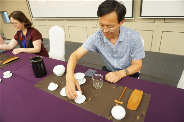 一名优秀的园区人,不仅仅要在教育教学方面有所成就,也需要有深厚的艺术底蕴。国家一级评茶师郭树红老师给大家带来了一场艺术的熏陶《茶文化与茶健康》。郭老师不仅为大家普及了茶文化,了解了茶健康,还让大家动手操作,指导如何正确用盖碗、公道杯、茶盂……这一个个大家以前不曾接触过的茶具,冲泡一壶独属于自己的茶,让老师们更加深刻地感受茶艺的熏陶。