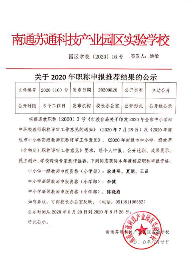 2020年职称申报推荐公示