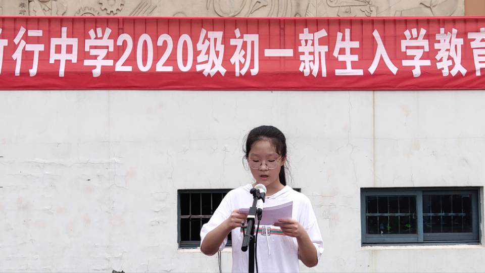 下午,全体新生齐聚报告厅,聆听学校行政人员的入学常规教育讲座。讲座开始前,七6班何姝雅同学上台分享了这两天军训的感受,她表示在今后的初中三年学习生涯中,一定会发扬在军训中学到的优良品质和作风,努力提高自己!
