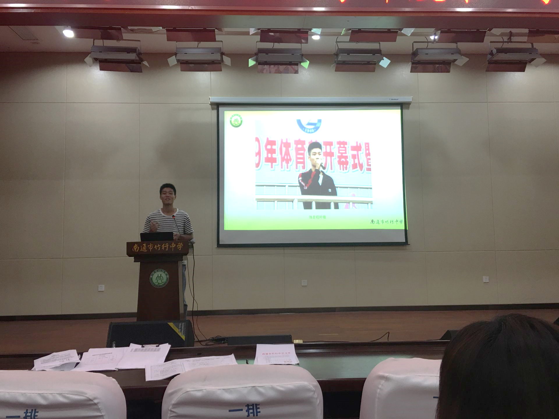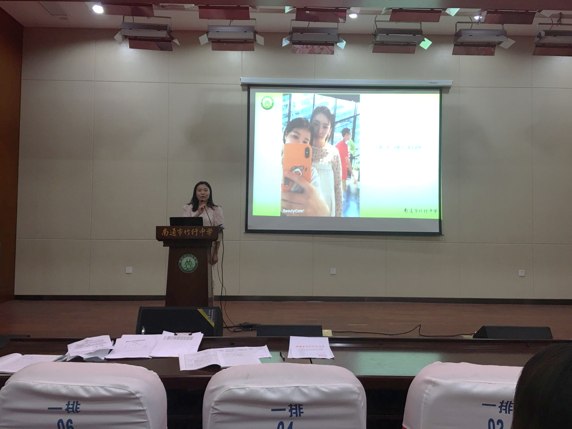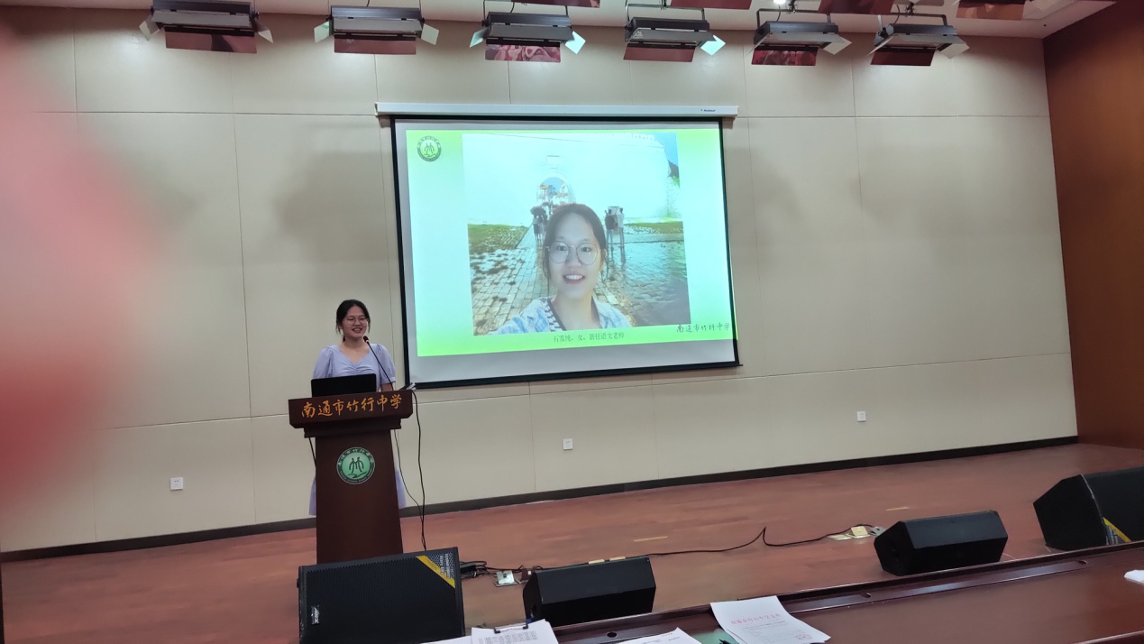 随后,沈校长回顾了近期学校的相关工作,再次宏观分析了2020 届中考,并通过一幅幅生动的图片向全体教职工展示了初一新生报名情况、初一新生入学教育、修雅课程推介活动、暑期校园维修工程和校园文化设施布置的图片。沈校长还隆重介绍了今年入职的四位新教师。新教师们一一亮相,表示愿意为竹中教育挥洒热情,虚心学习,争做新时代的“四有”好教师。