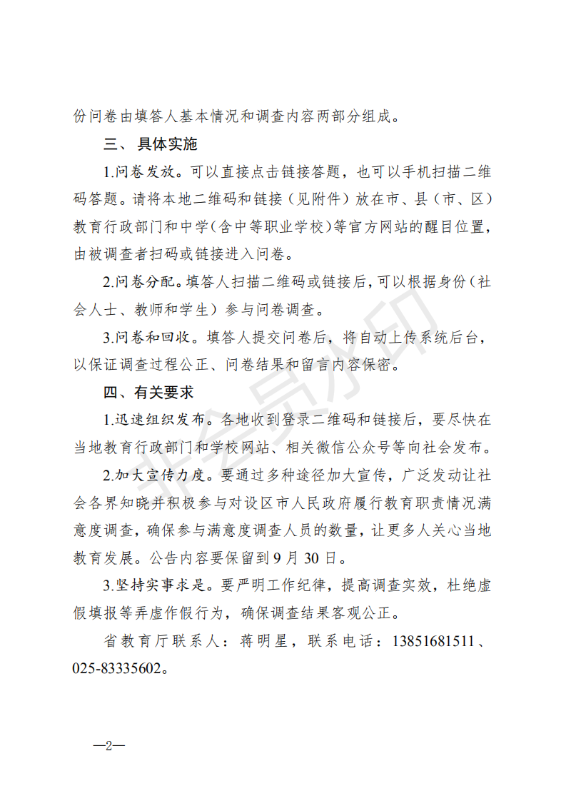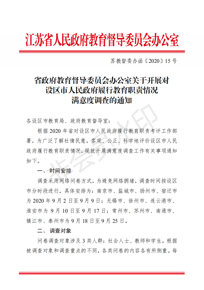 省政府教育督导委员会办公室关于开展对设区市人民政府履行教育职责情况满意度调查的通知