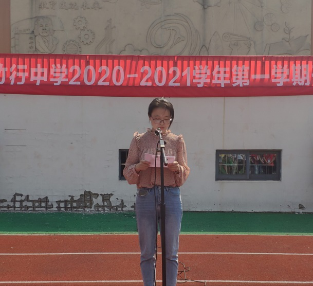 秋风送爽,天高云淡。9月4日上午,竹行中学举行2020-2021学年度第一学期开学典礼,全体师生齐聚操场参加此次典礼。典礼由韩丽老师主持。
