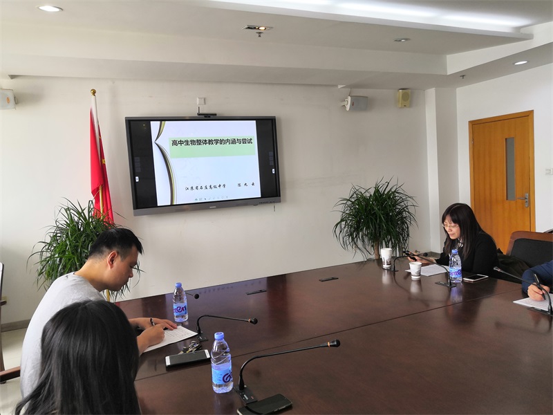 工作室邀请南通市学科带头人、省石庄高级中学陈九云老师作讲座。陈老师以《高中生物整体教学的内涵与尝试》为主题,阐述了整体教学的由来、内涵,以经典的教学案例诠释了整体教学的课堂实践、道出了“活动单导学”的精髓,以优良的高考业绩呼应了整体教学的教学效益。讲座过程中,工作室成员积极参与互动,提困惑,说思路,找对策,力争把他校的经验借鉴到本校本区域的教学实践中来,不断提升学生的学科核心素养。