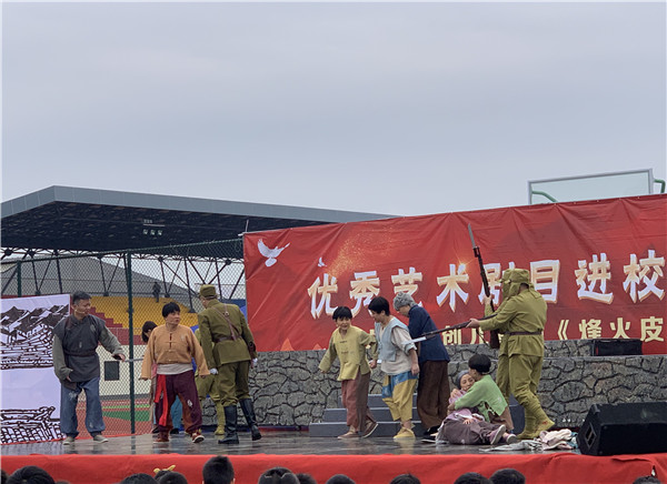 为纪念中国人民抗日战争暨世界反法西斯战争胜利75周年,《烽火皮影团》以创新的形式讲述了中国抗战小英雄的故事,带领我校学生一起铭记历史,缅怀先烈,珍爱和平。