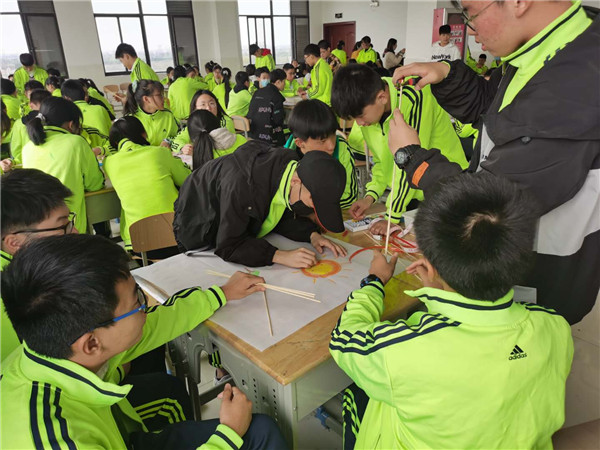 在老师的讲授和指导下,孩子们纷纷动手制作,团队合作,分工明确。风筝制作的过程中也让孩子们学习和巩固了数学和物理的相关知识。比如:刻度尺的使用、长度的测量以及风筝放飞技巧中,都蕴含着丰富的物理知识,也为日后的深入学习积攒了丰富的直观体验……
