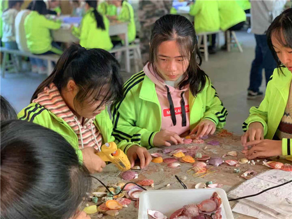 每个孩子挑选自己喜欢的贝壳,设计图案,并将它们做成自己独一无二的作品。孩子们丰富的想象力、动手能力,让我们看到了他们深藏不漏、令人惊喜的另一面。
