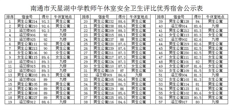 经检查组检查评比,本次被评为优秀安全卫生宿舍的有如下: