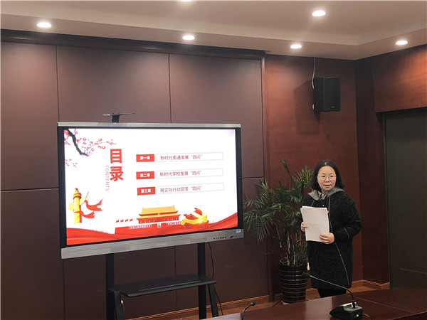 为全面把握新时代南通发展的新任务新要求,牢牢抓住新时代学校发展的新机遇新形势,园区学校党支部于11月25日下午组织全体党员开展“三思南通四问,做好教育答卷”主题党日活动。本次活动由党支部纪检委员袁雯同志主持。