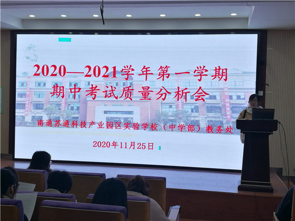 为进一步了解学情,分析教学中取得的成绩和存在的问题,提高教学质量。11月25日中午,园区学校中学部召开了期中考试质量分析会。