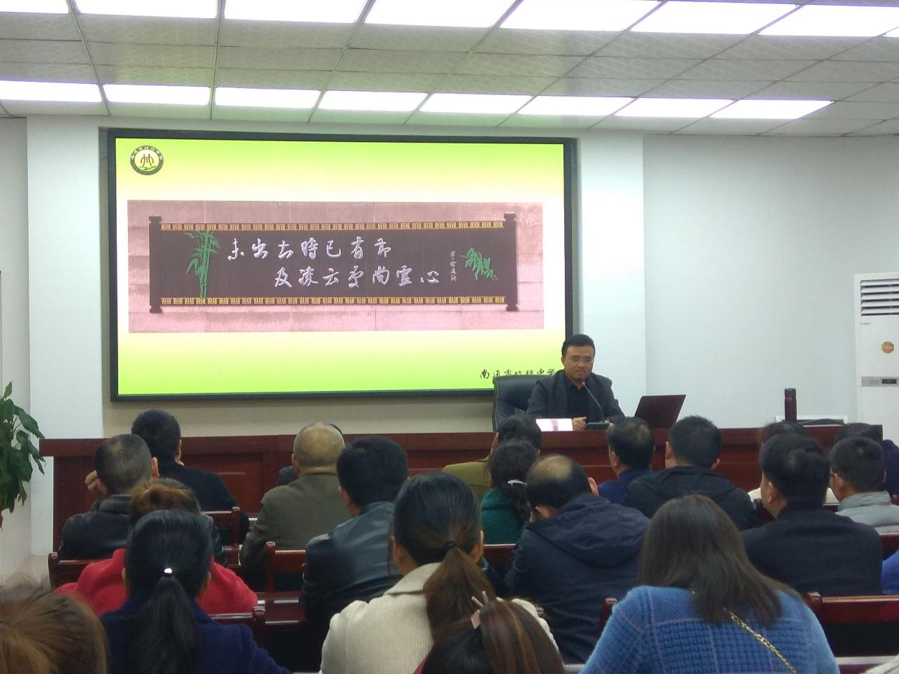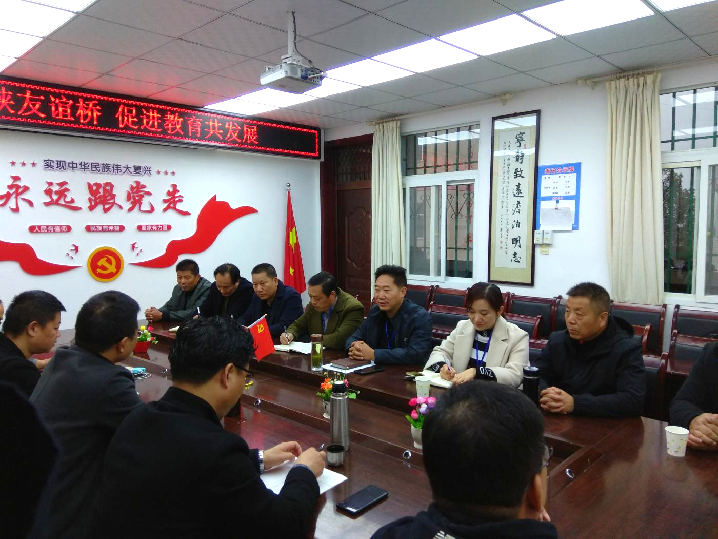 在徐家堡中学会议室,沈明明校长作了题为《学校校园文化构建与实践思考》的专题报告,陈达主任作了题为《办公室工作经验交流》, 韩飞主任作了题为《指向核心教学的中学语文学科育人实践思考》的专题报告, 与城固县董家营镇徐家堡中学、永宁寺小学、星星幼儿园等17个单位的校长们、园长们分享了经验。