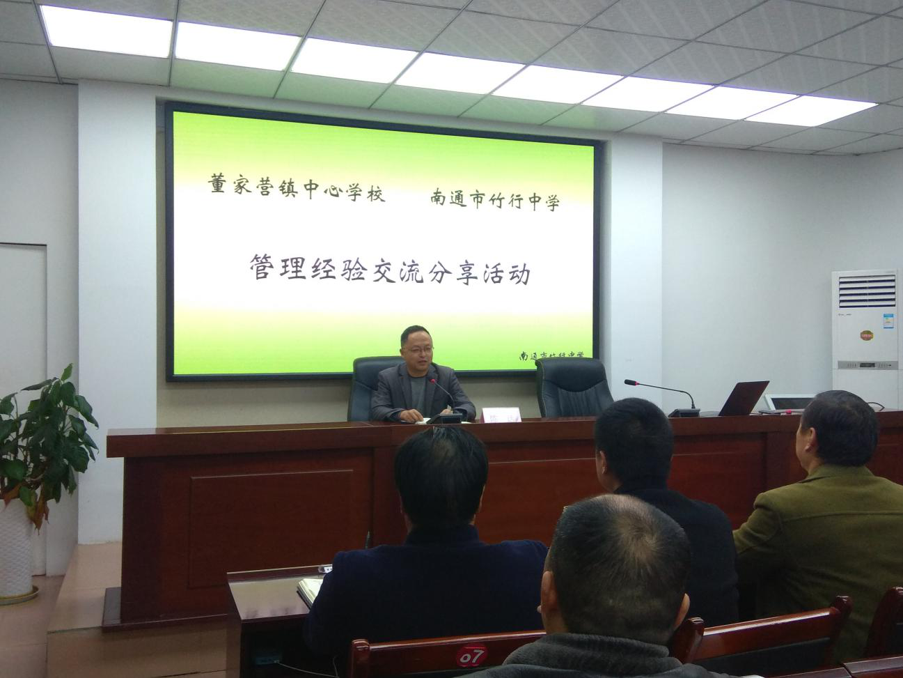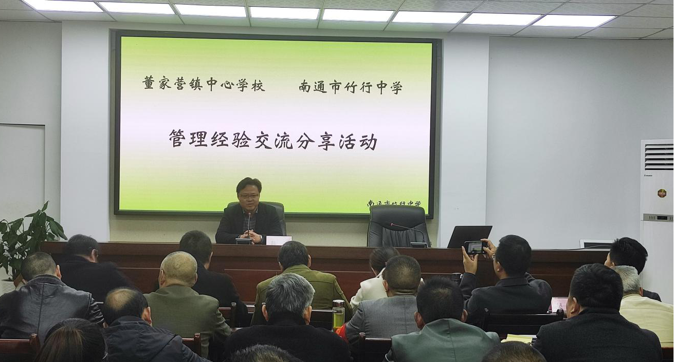 沈明明校长向结对帮扶学校介绍了学校所在地南通经济技术开发区竹行街道的基本情况,南通当地的教育发展情况,以及竹行中学的办学规模、办学理念、校园文化、智慧校园等序列建设情况,谈到了南通的课改及专业成长对教师自身发展的重要性,并就学校管理、生源情况、地方特色等与结对帮扶学校的领导班子进行了深入交流。