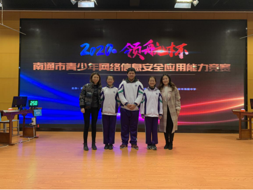 2020年“领航杯”南通市青少年网络信息安全知识竞赛11月28日在海安市海陵中学举行。此次比赛由南通市教育科学院主办,南通市共有十支代表队参与了现场角逐,经过紧张激烈的个人必答题、团队共答题、团队抢答题、团队风险题四个环节的比拼,由我校袁雨涵、严慧颖、陈许尧三名同学组成的开发区代表队以总分第二名的优异成绩获得了南通市一等奖。