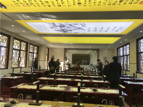杨会长一行首先参观了校园,姚敏校长向专家们介绍了学校“一室”、“一廊”、“一园”、“一厅”、“一库”的诗教环境课程,专家们对学校整洁大气的环境布置、丰富深厚的文化氛围和鲜明的办学特色给予了充分的肯定。