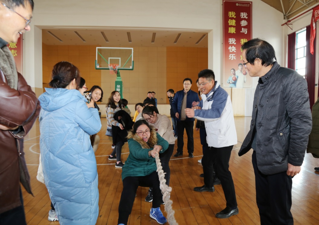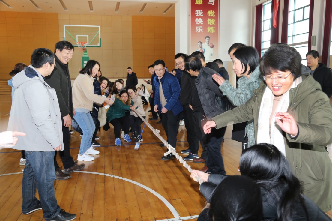 为了丰富广大教职工的业余生活,锻炼体质,让大家在比赛中学会团结与协作,12月22日下午1:00,学校工会组织第十八届“辞旧迎新”系列活动之女子拔河比赛在食堂三楼风雨操场举行。三个年级每队选出10名女教职工,年级组长现场抽签,比赛采用循环赛,三局两胜制。