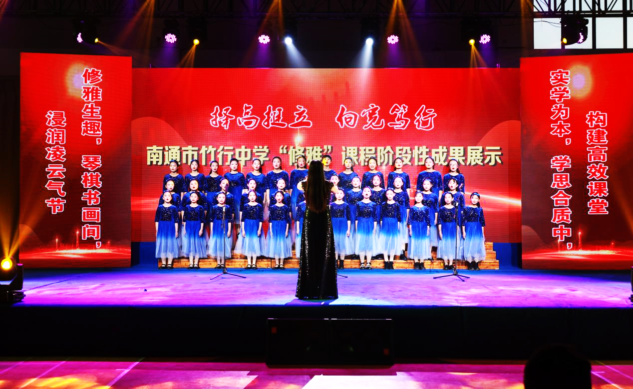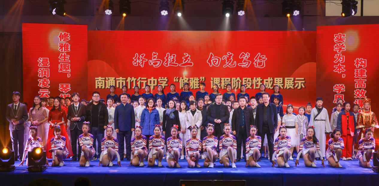 择高挺立,向宽笃行——南通市竹行中学“修雅”课程阶段性成果展示活动在热情洋溢的啦啦操中拉开帷幕。
